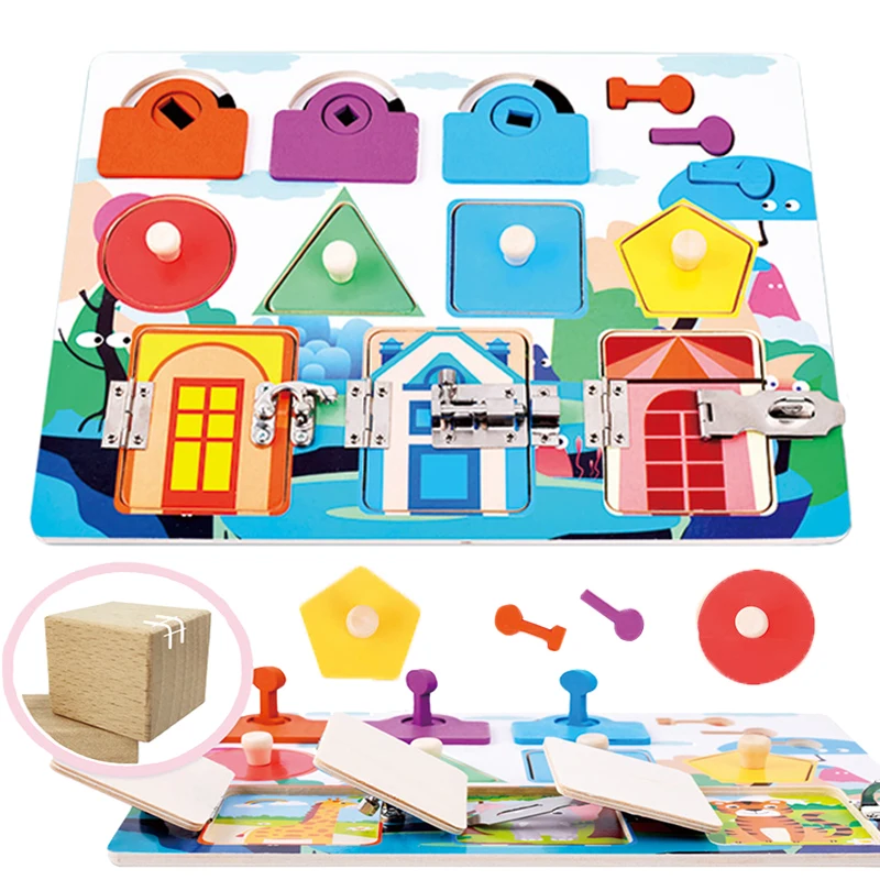 Малыш заняты доска разблокировки обучающая игрушка ранние профессиональное обучение Цвет Форма Монтессори деревянная игрушка учебных пособий обучения доска