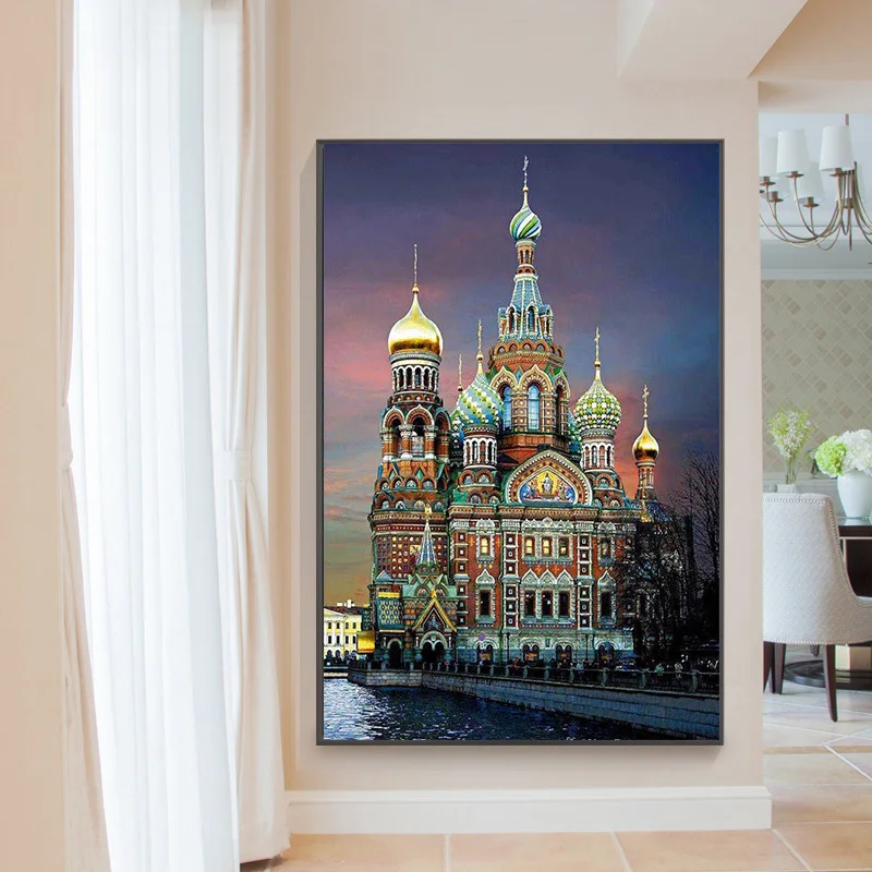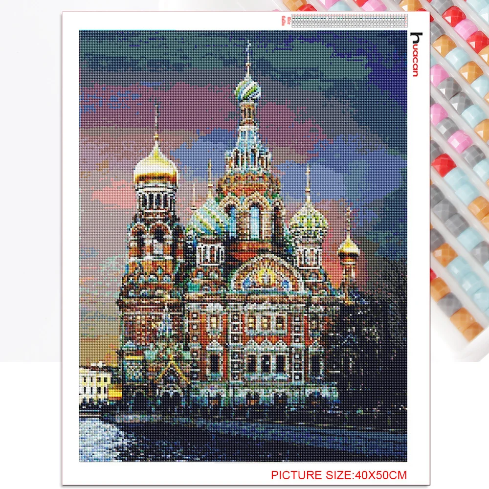 Алмазная 5d картина Huacan, полная выкладка, церковная вышивка алмазный замок, наборы мозаики, здание, пейзаж, картины для интерьера