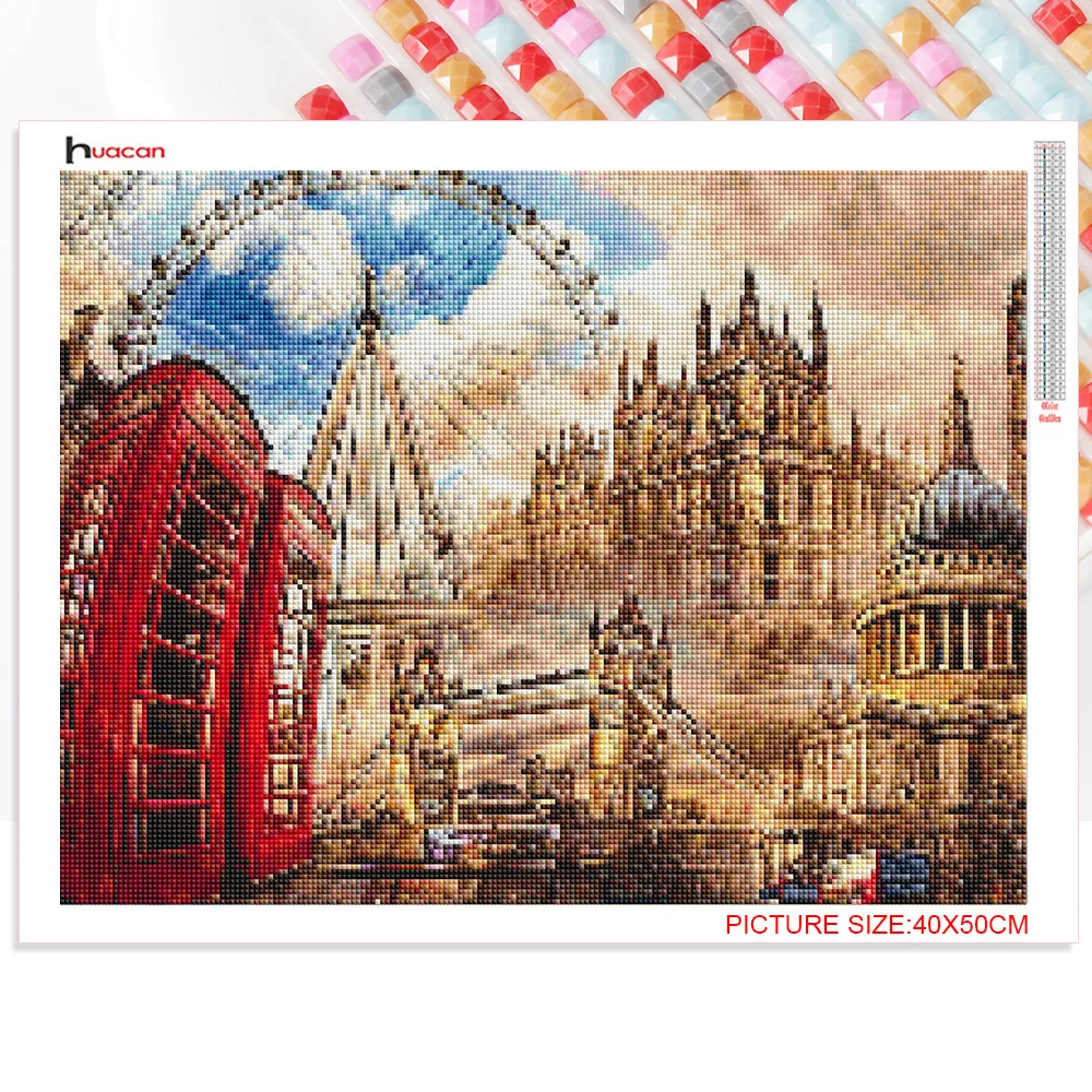 Алмазная 5d-вышивка Huacan, мозаика с мотивом моста, строительство, полноразмерная картина, река, город, пейзаж, Настенный декор