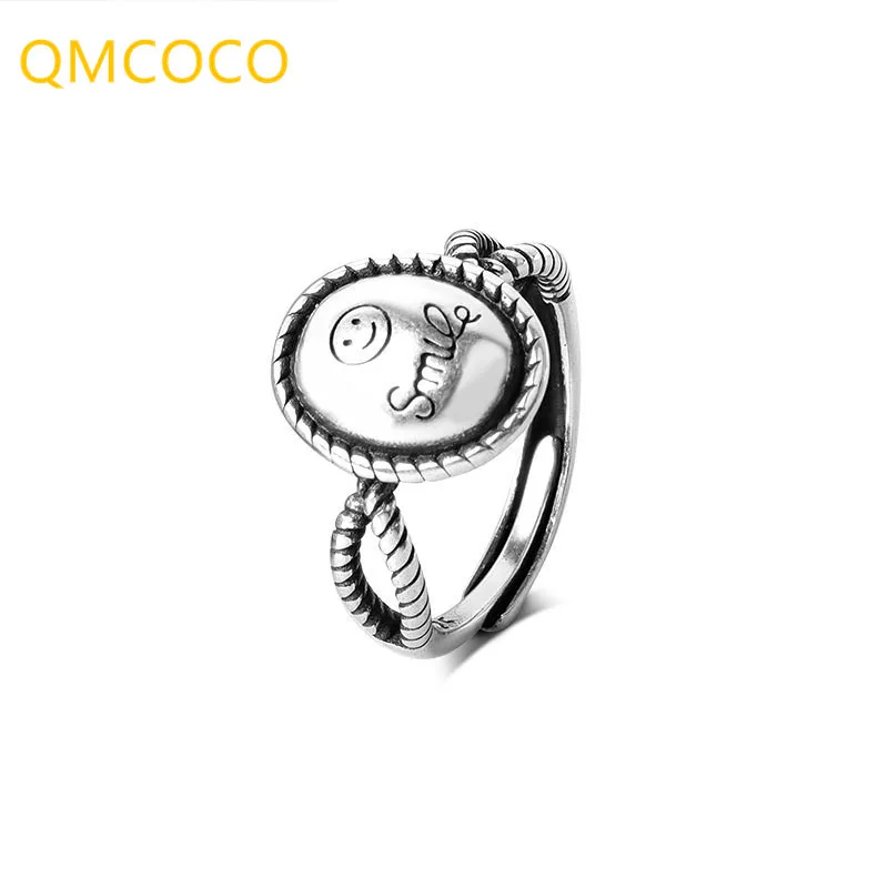 QMCOCO панк хип-хоп серебряного цвета Модные Винтажные кольца с улыбкой лицом открытые Регулируемые кольца на палец для женщин ювелирные изделия для вечерние Ринок