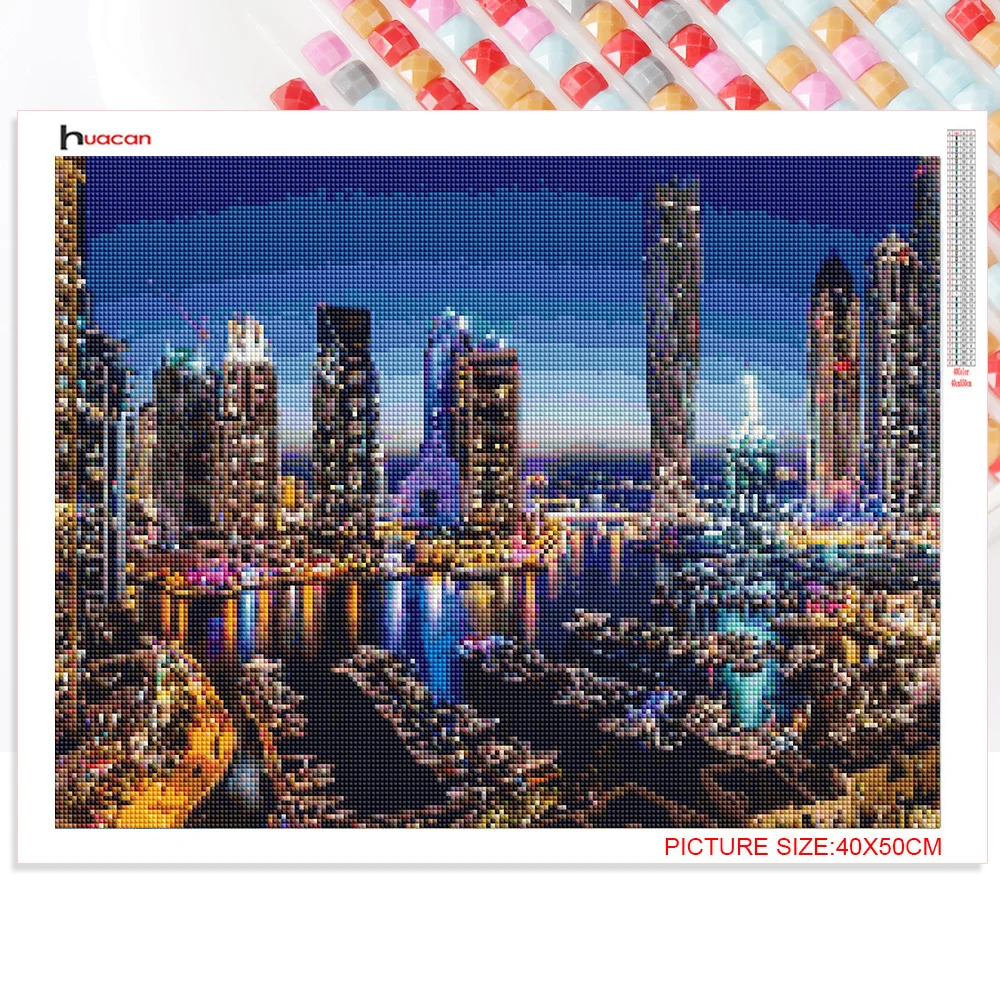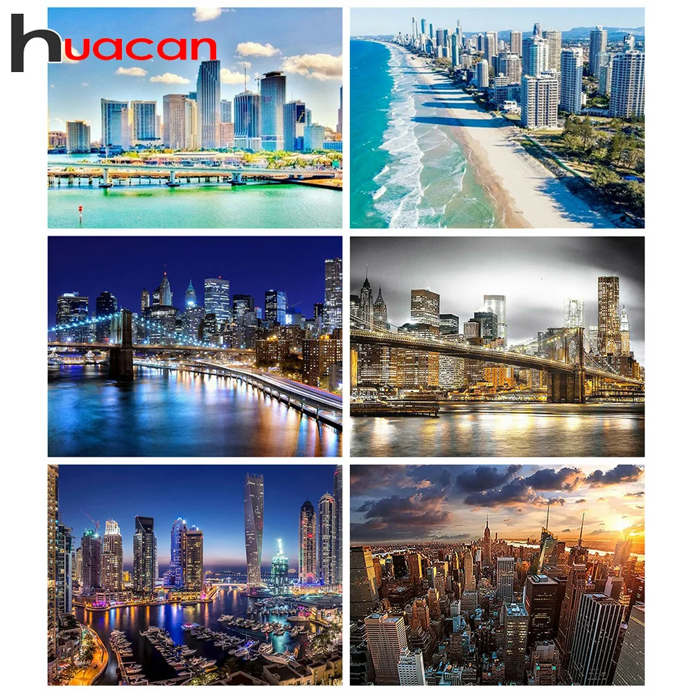 Алмазная вышивка 5d Huacan, вечерняя алмазная живопись, вышивка крестиком, квадратная мозаика, город, картины ландшафт зданий, домашний декор