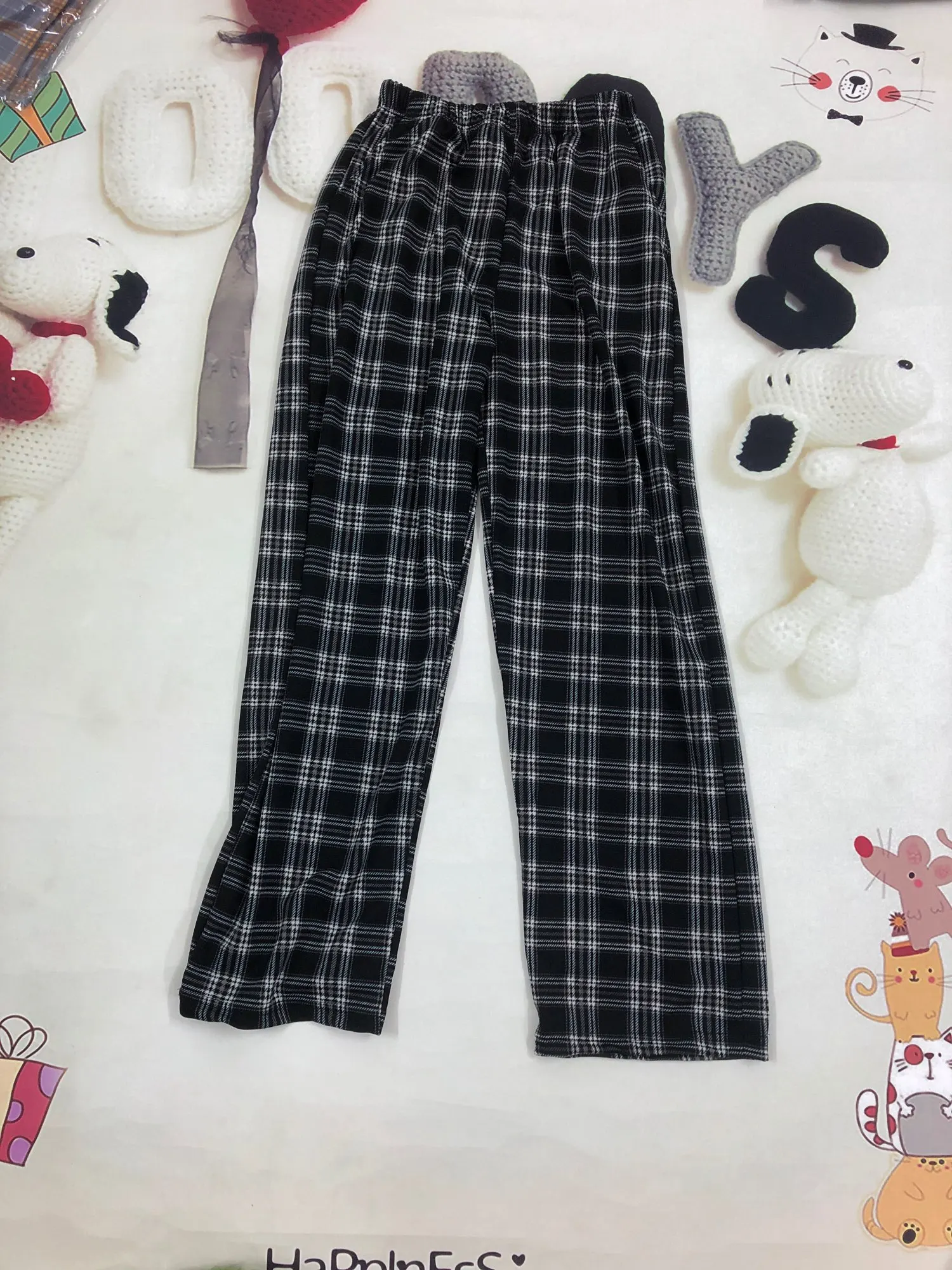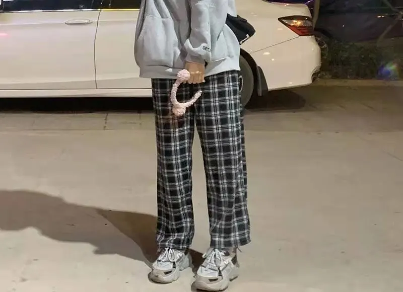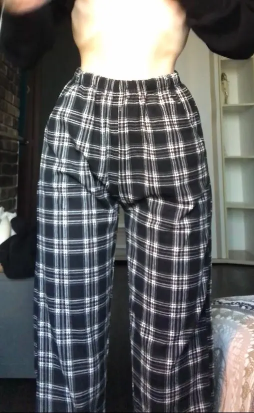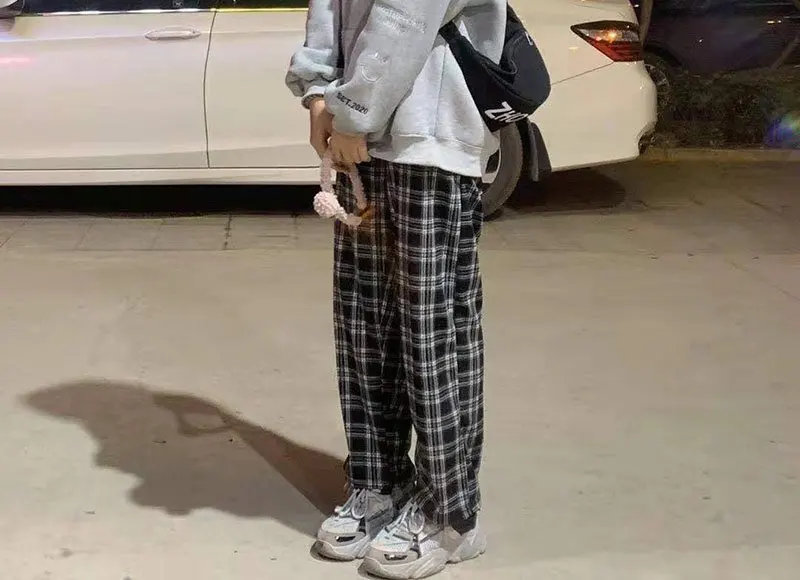 Брюки женские черные в клетку, большого размера, в стиле ретро, размера плюс