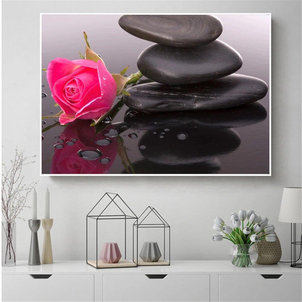 Скандинавский декор, Постер Зен-религия, скандинавский настроение, буддизм, каменные цветы, настенные картины для гостиной, Черное и белое искусство на стену