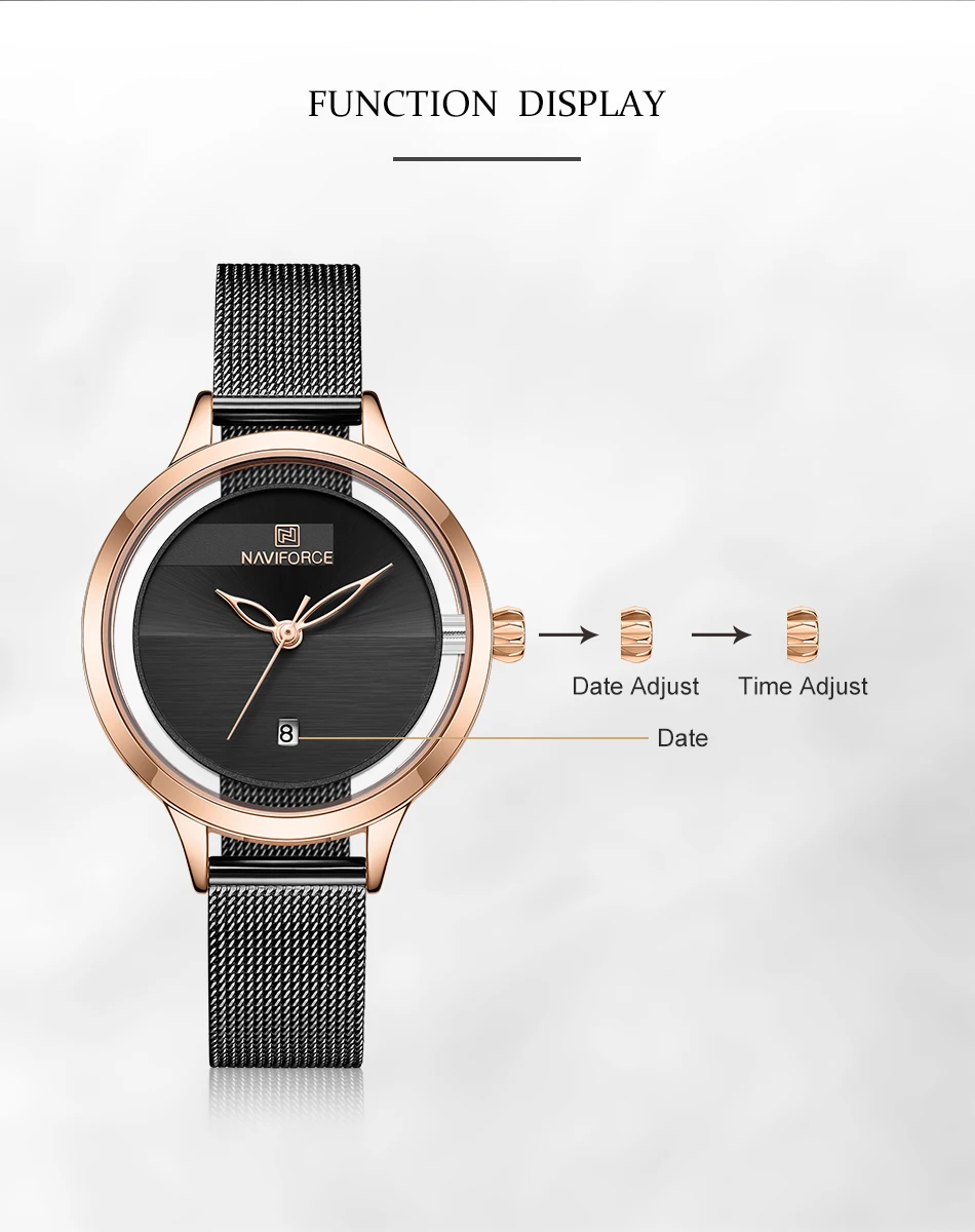 Модель: NAVIFORCE NF5014NAVIFORCE повседневные женские часы, дамские деловые часы, кварцевые наручные часы, водонепроницаемые часы из нержавеющей стали, роскошные часы Relogio Feminino