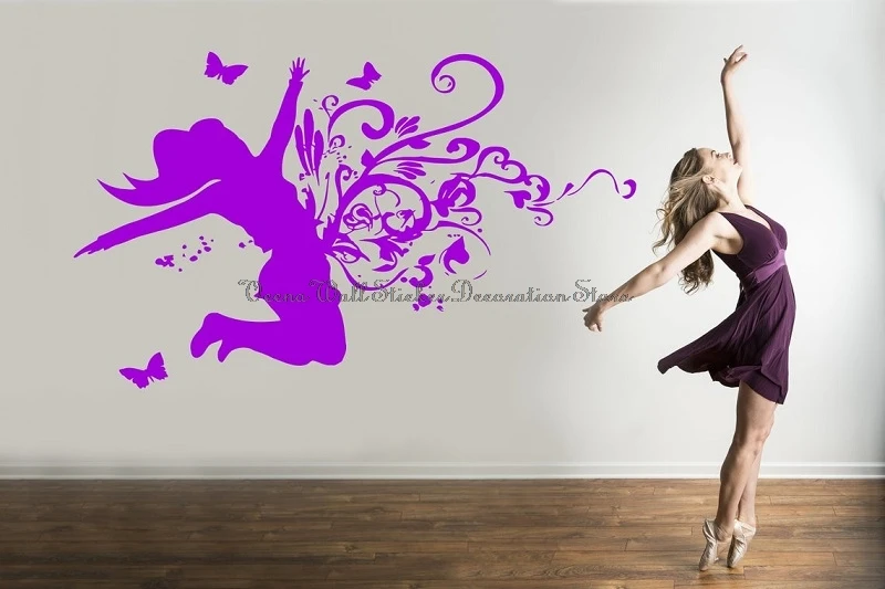 Летающая бабочка в стиле хип-хоп, наклейки на стену для танца, гимнастики, балета, танца, студии, танцев, студии, школы, художественная Декоративная Виниловая наклейка W6