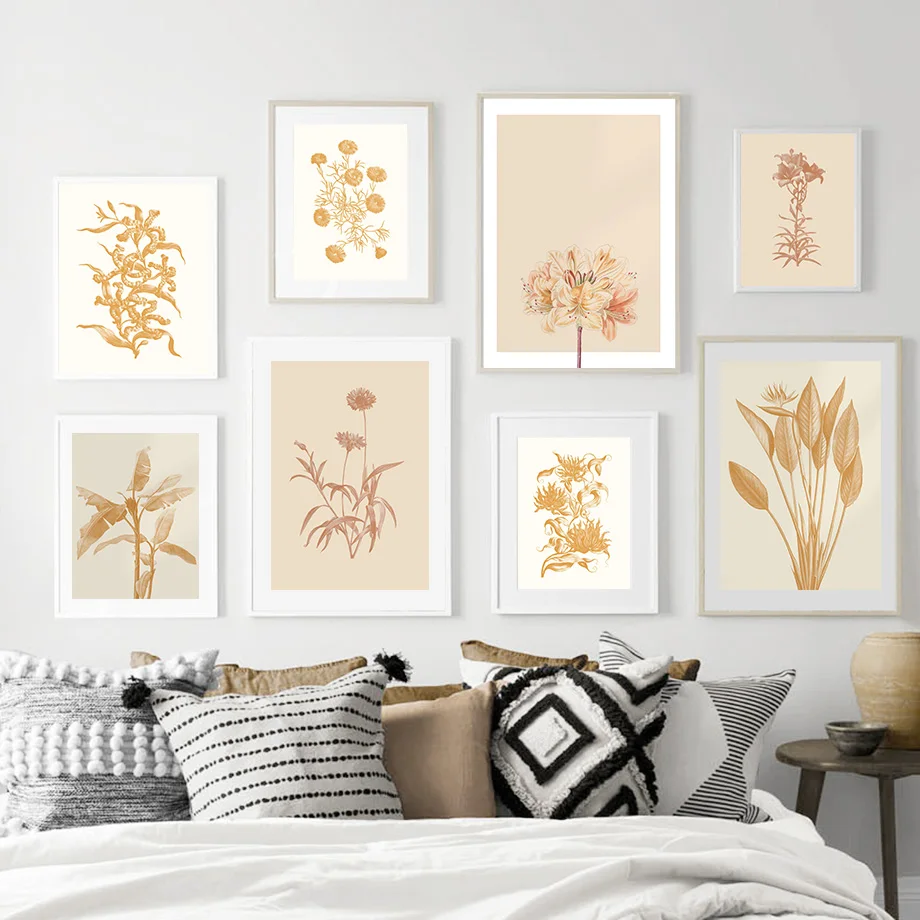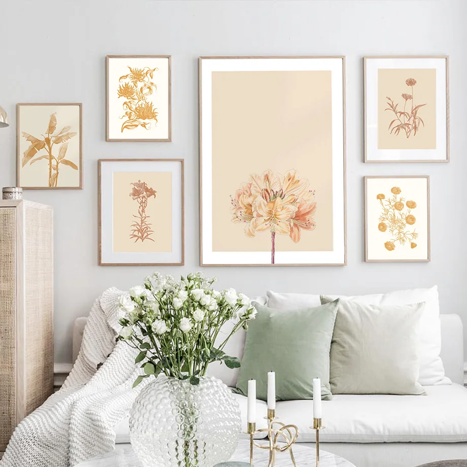 Винтажная Абстрактная Картина на холсте с изображением лилии и хризантемы, настенные картины в скандинавском стиле для декора гостиной