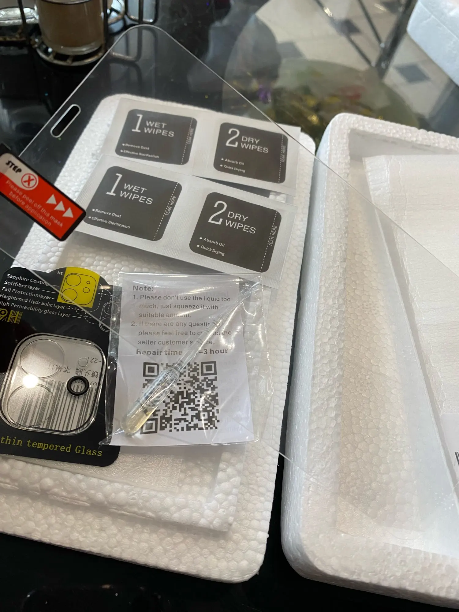 С виду стекло приличное. Когда увидела коробку мятую, думаю капец, повреждённое. Но когда открыла удивилась. К стеклу ещё и подарочки лежали. Стекло на камеру, две двойные салфетки и какая-то палочка с жидкостью внутри, пока не понимаю что с ней делать. Рекомендую!!!