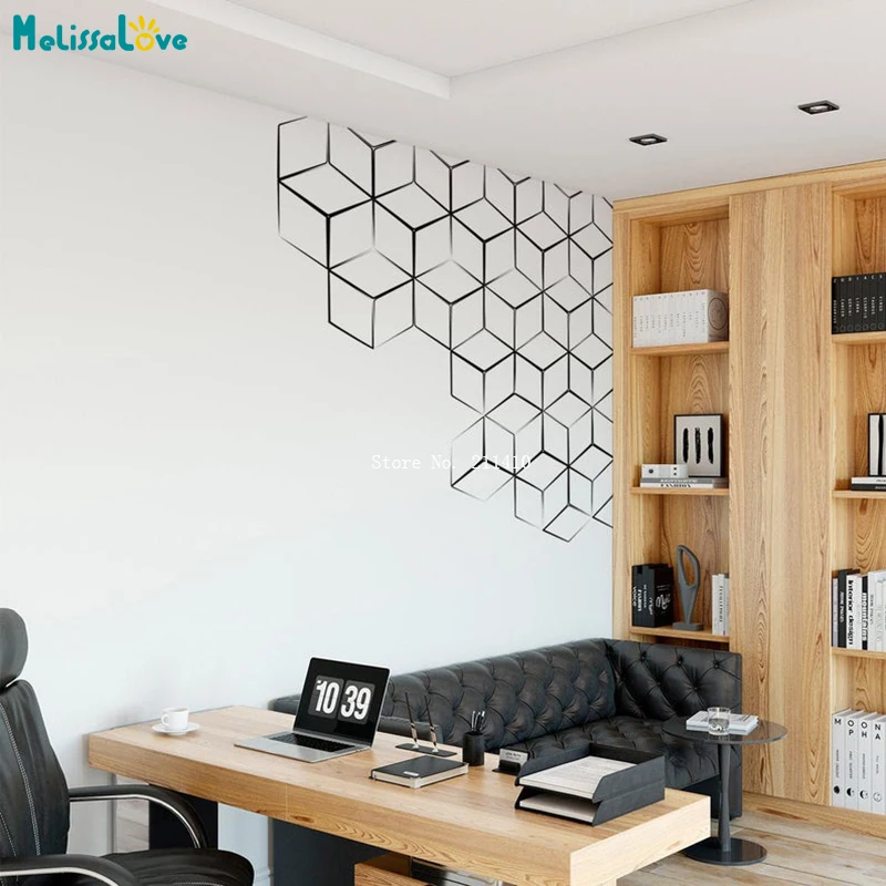 Абстрактные Художественные декоративные геометрические настенные наклейки в виде кубиков, минималистичные новые наклейки на стену, Переводные картинки YT5990