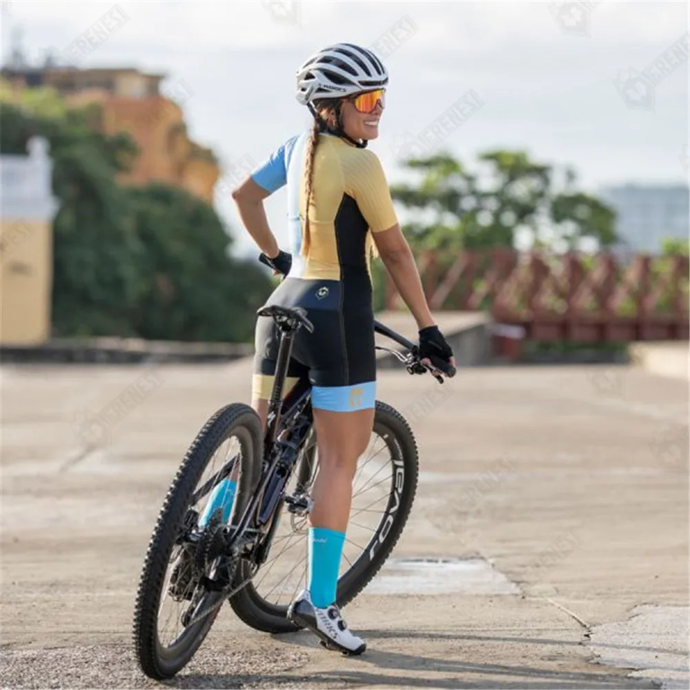 2021 Frenesi женский триатлон с коротким рукавом Велоспорт Джерси наборы кожаный костюм Maillot Bahia Enterizo велосипедная одежда