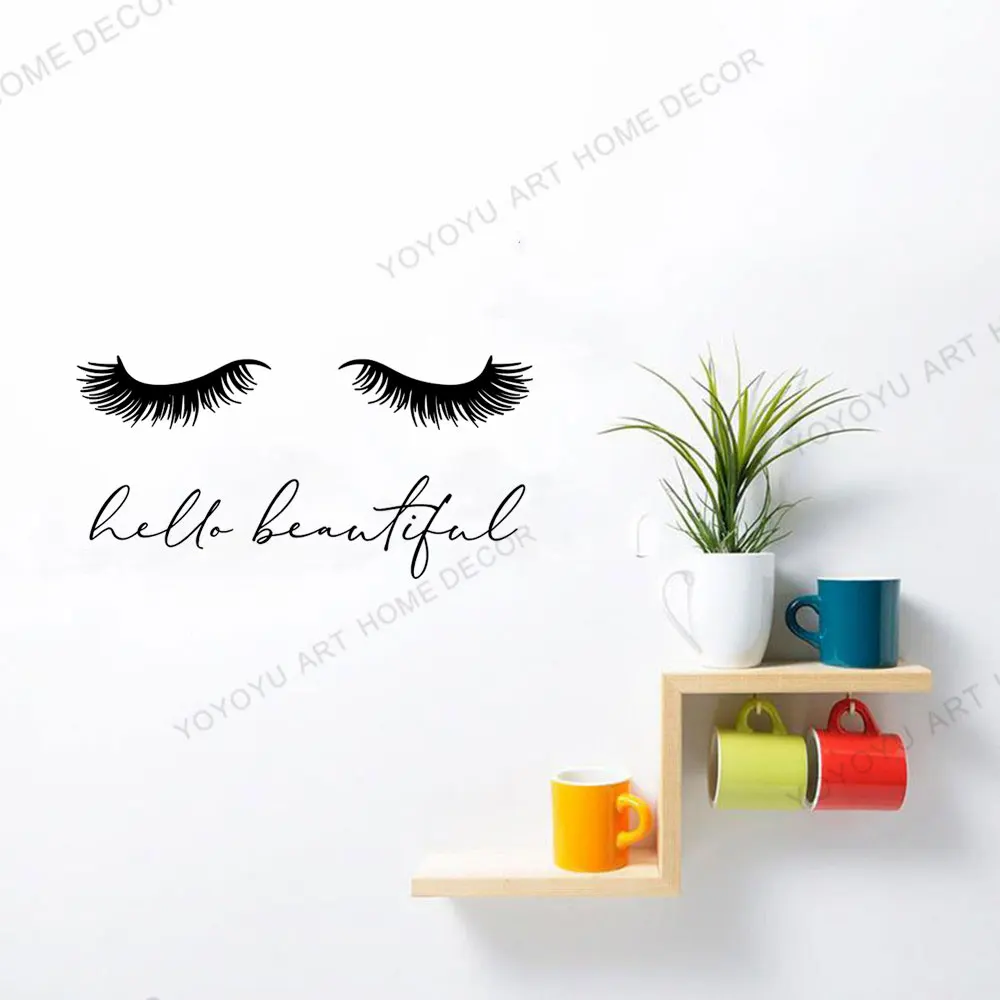 Ресниц и устойчивые к воде, глаза Цитата стены наклейки виниловые Ресницы Наклейки на стены для девочек Спальня брови магазин Декор для салона красоты DW8403