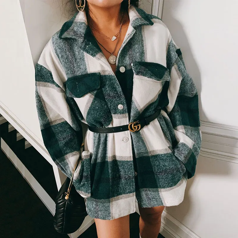 Лидер продаж, куртка Lusumily, женская модная Толстая куртка в розово-зеленую клетку, женская рубашка, винтажное пальто, весенние повседневные женские топы, верхняя одежда