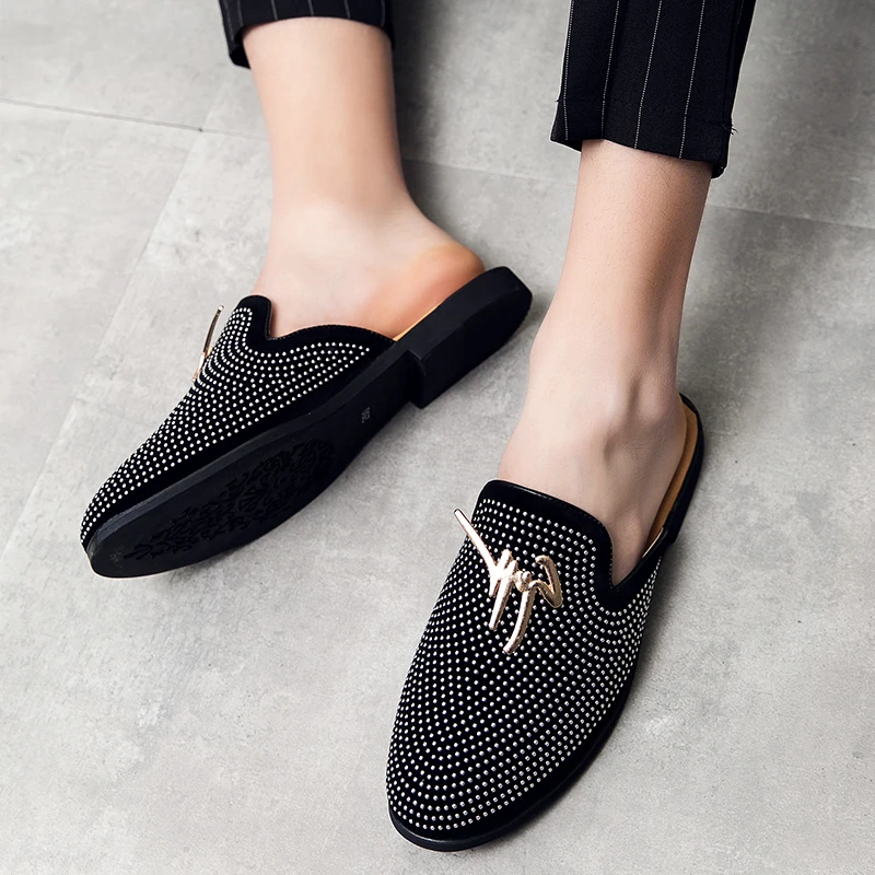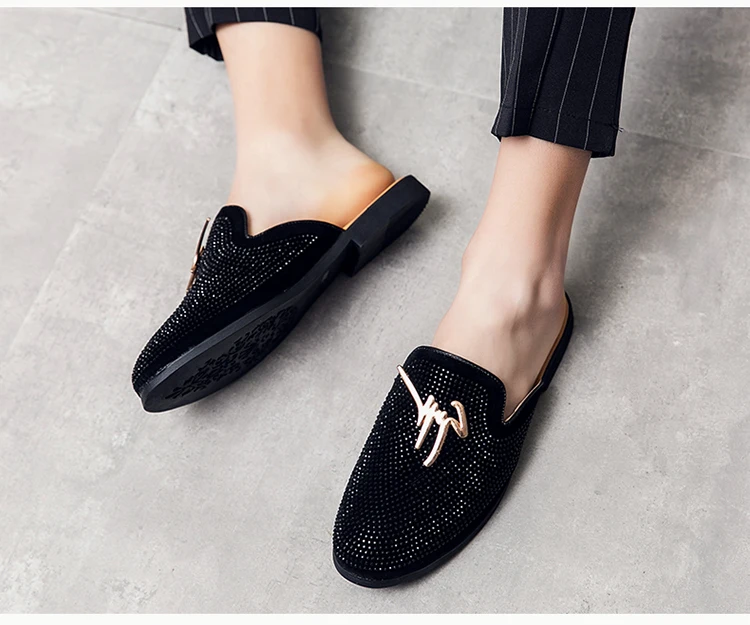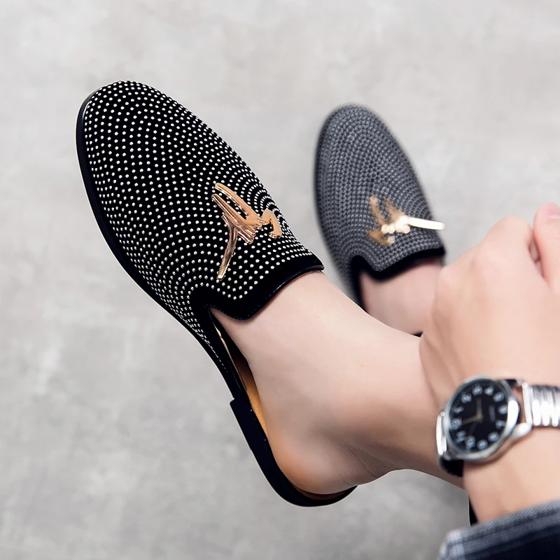 Мужские полутапочки, обувь для мужчин стразы, Роскошные Мокасины, м...