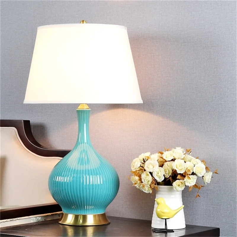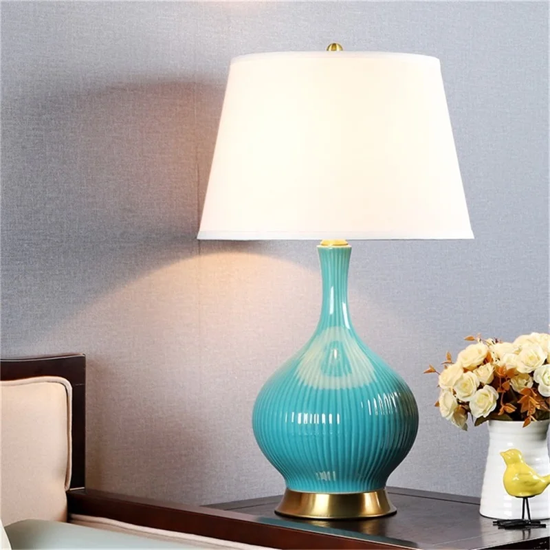 OUFULA Керамика настольная лампа Медь современный роскошный бледно-голубой Настольный светильник светодиодный для дома тумбы