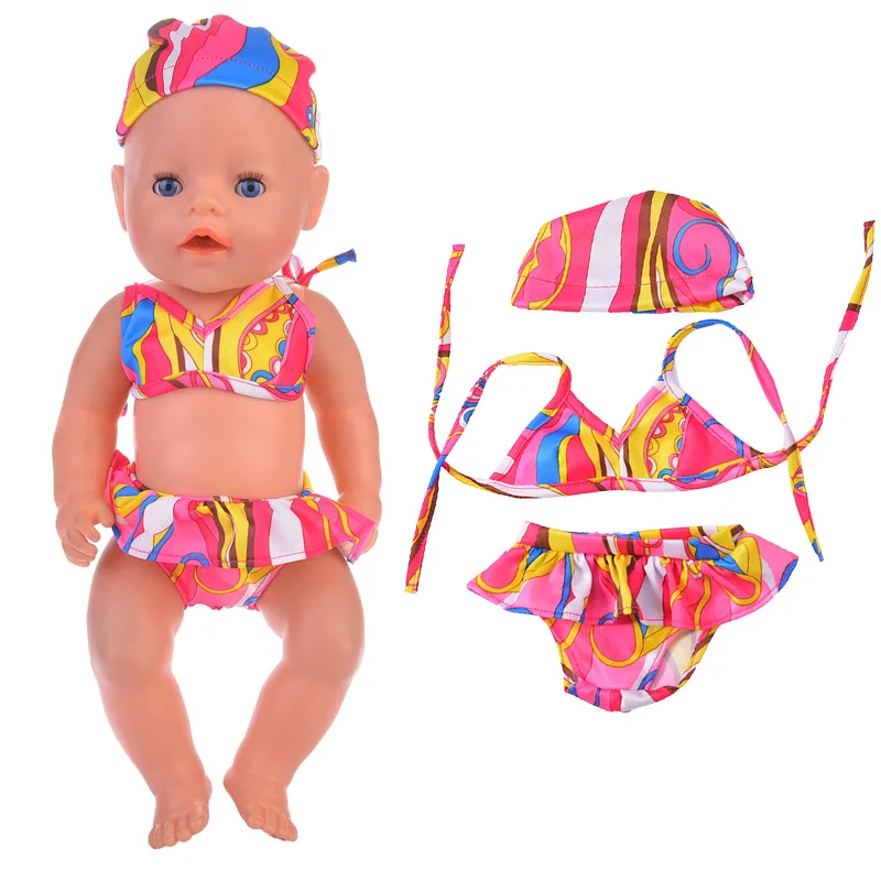 3 шт.лот, Одежда для кукол, купальник с милым животным принтом, подходит для американских кукол 18 дюймов и девочек 43 см, Товары для новорожденных, подарок