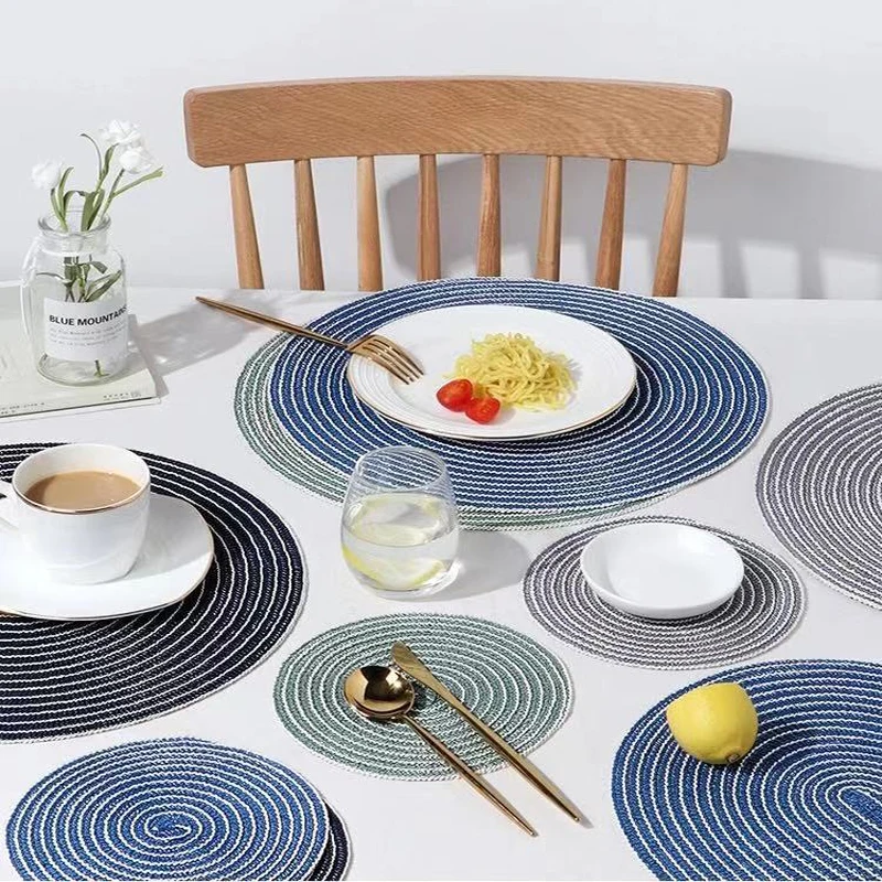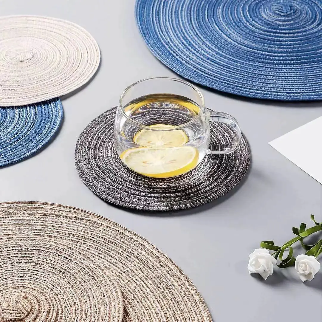 Набор из 2 тканых круглых салфеток, термостойкие Нескользящие моющи...