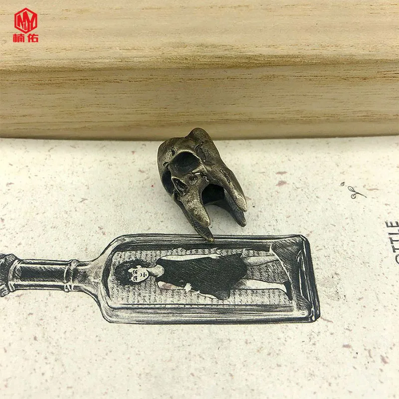 1 шт. бусы EDC на ревочке с зубцами череп ретро латунный медный шнурок подвески нож бусины Зонт веревка шнур бусины подвески