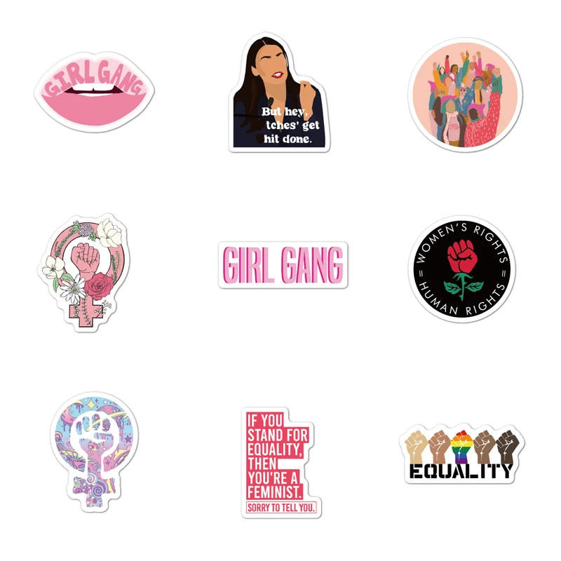 Стикеры для девочек с мотивом феминизма и мультфильма, для детей, с...