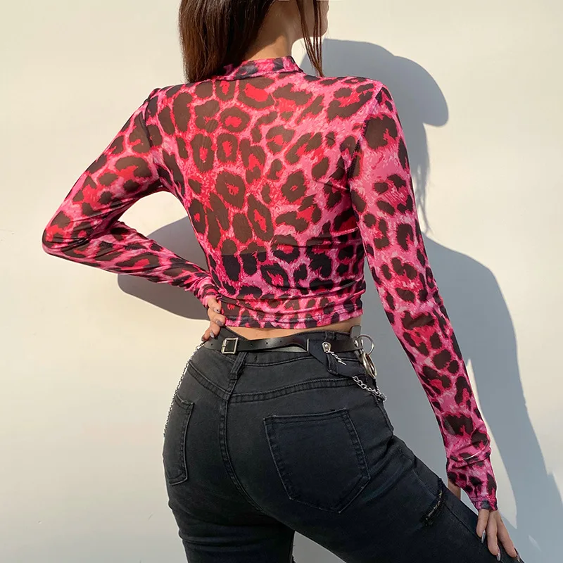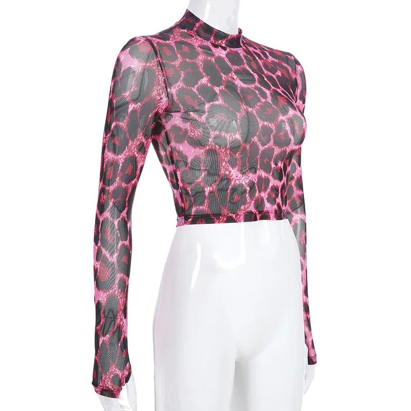 Женский сетчатый топ с леопардовым принтом, прозрачный укороченный ...