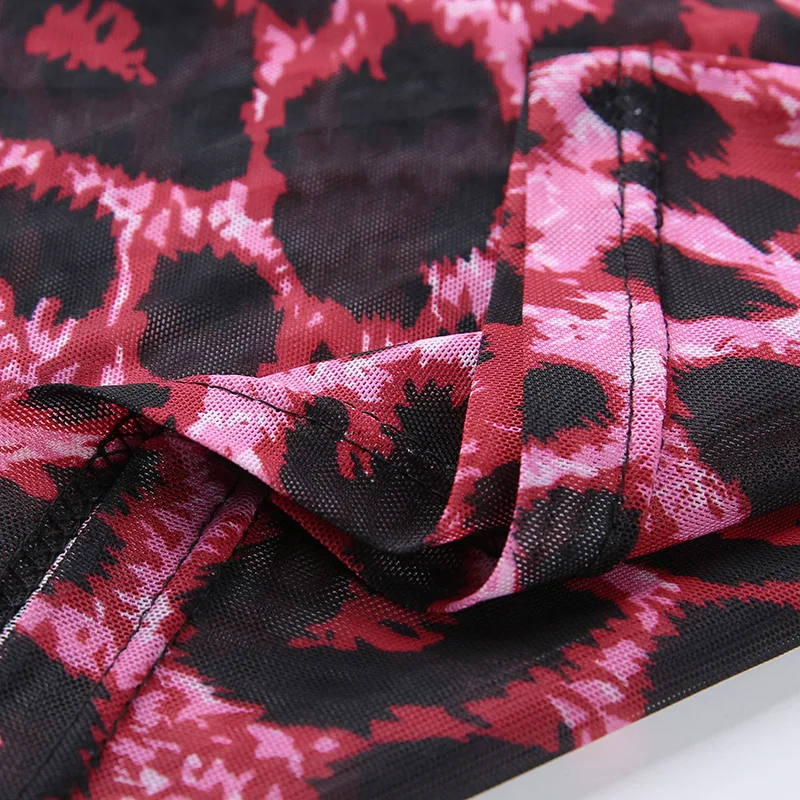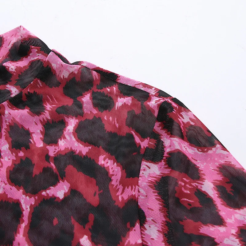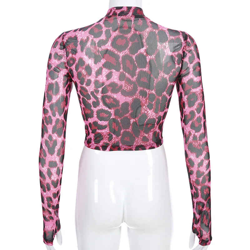 Женский сексуальный укороченный топ, розовая сетчатая одежда с леоп...