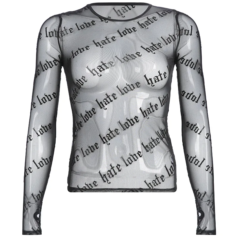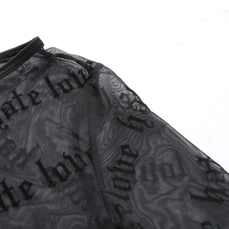Сексуальная женская прозрачная Сетчатая футболка с буквенным принто...