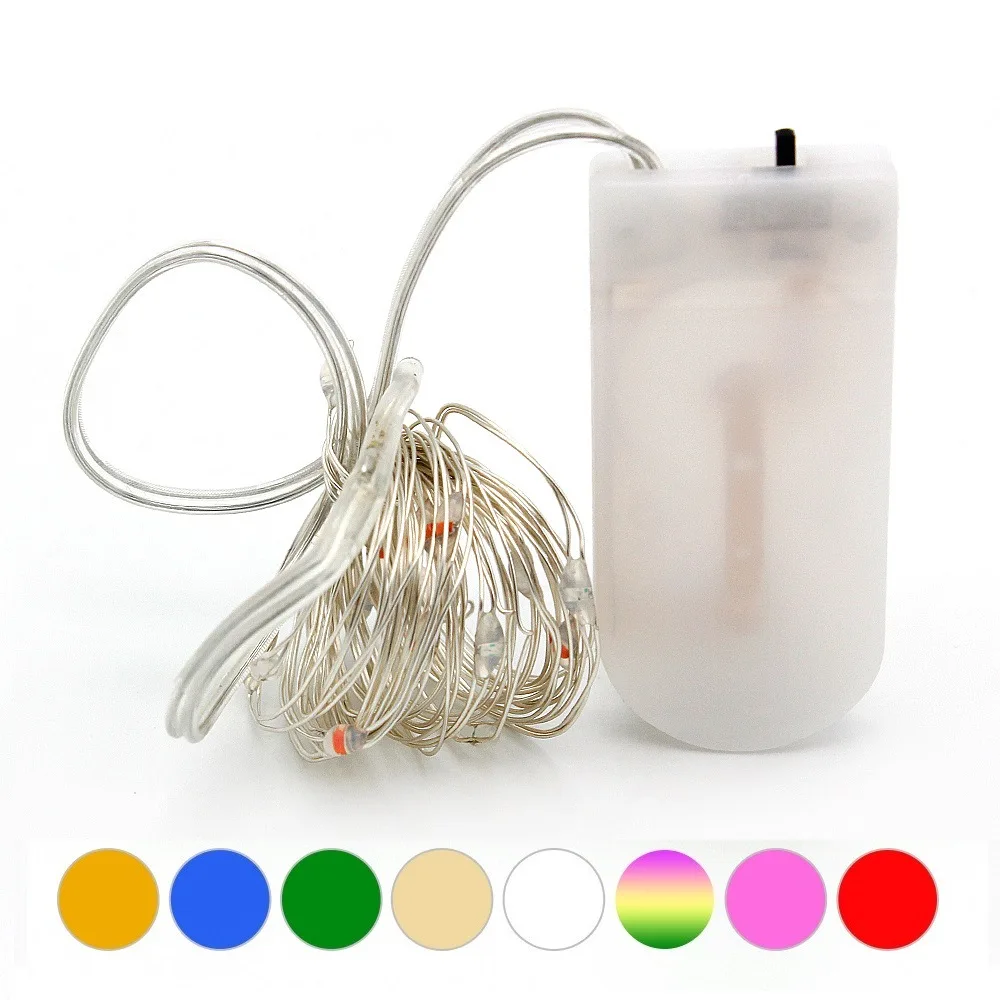 Питание от2 шт. * CR2032Аккумулятор(Не входит в комплект) Материал: медная проволока и ПВХ Длина: 1M2M/3m/5M Расстояние между 2 светодиодами: 10 см (4 дюйма) Количество светодиодов: 10 светодиодов/20 светодиодов/30 светодиодов/50 светодиодов 3 режима: вкл. (постоянное включение); ВЫКЛ. Водонепроницаемость: Да, тОн должен быть хорошо защищен при использовании в дождливые дни Напряжение питания: 3 в Посылка включает: 6X светодиодные батареи струнные огни(Батарея в комплект не входит)