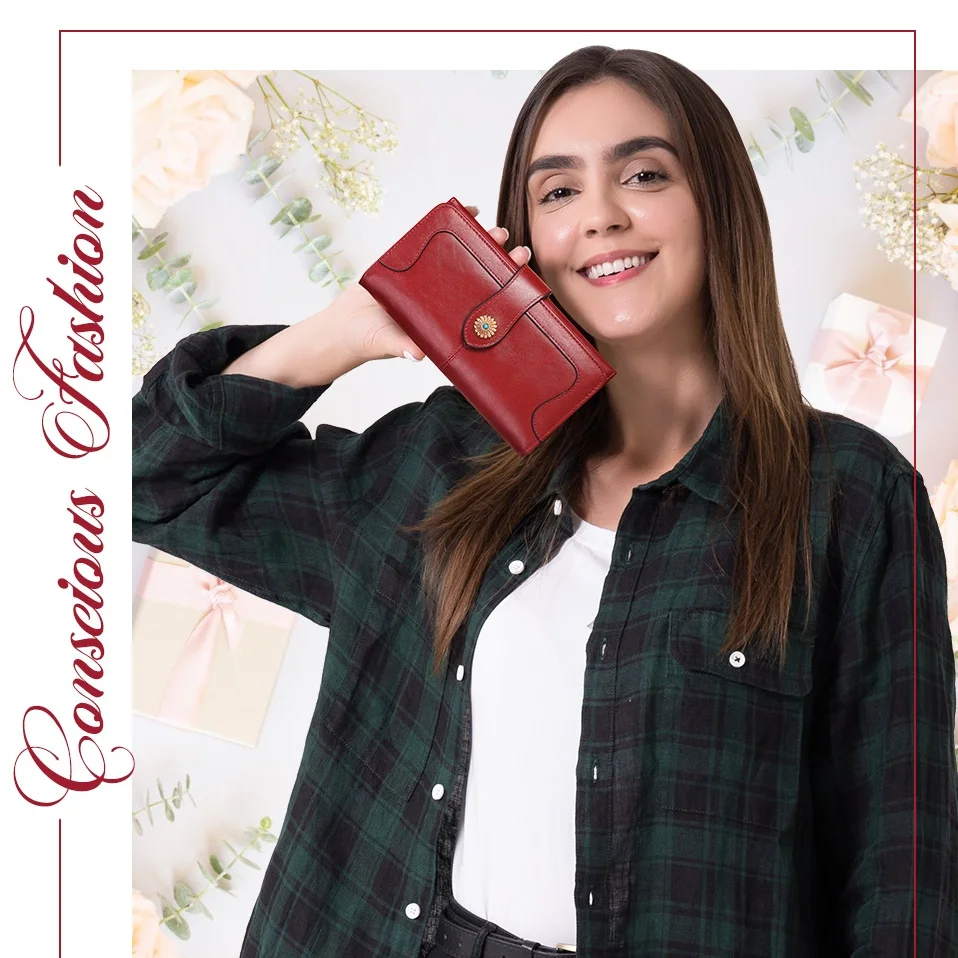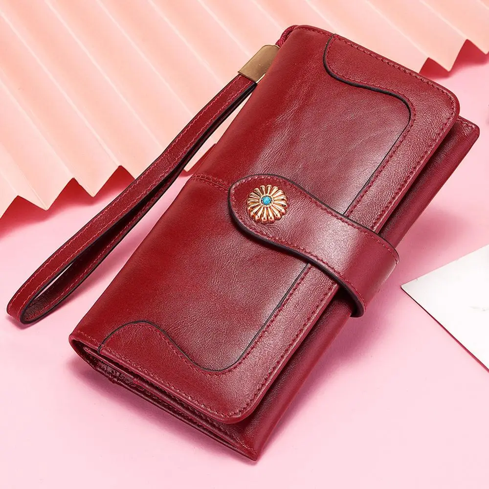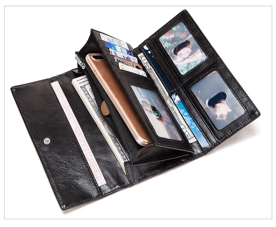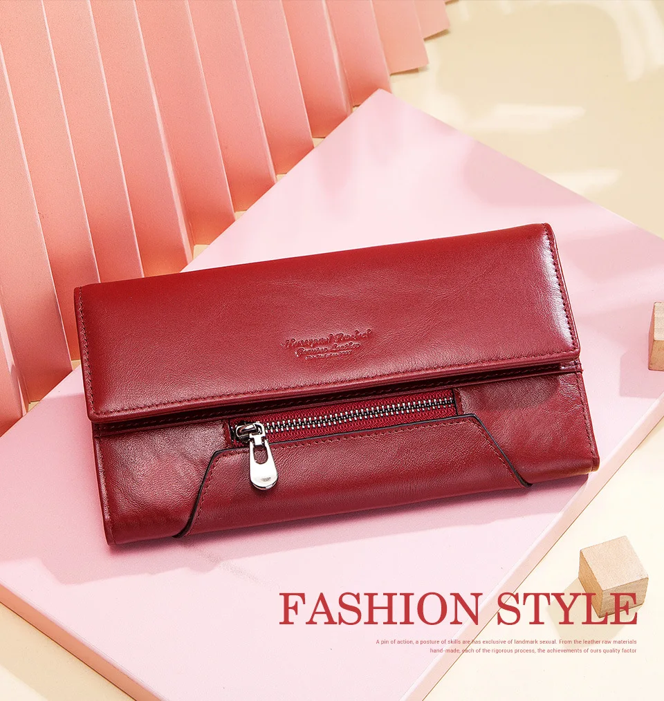 Длинный кошелек из натуральной воловьей кожи для женщин, клатч из натуральной кожи с блоком RFID, женский бумажник с кармашком для монет, роскошный брендовый держатель