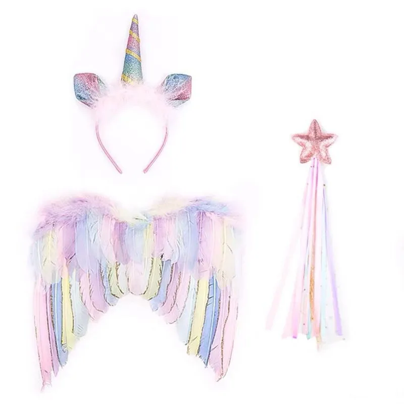 Радуга Ангел перо Крылья Единорог партия Единорог один 1-й День рождения вечеринка Декор Единорог Baby Shower девочка