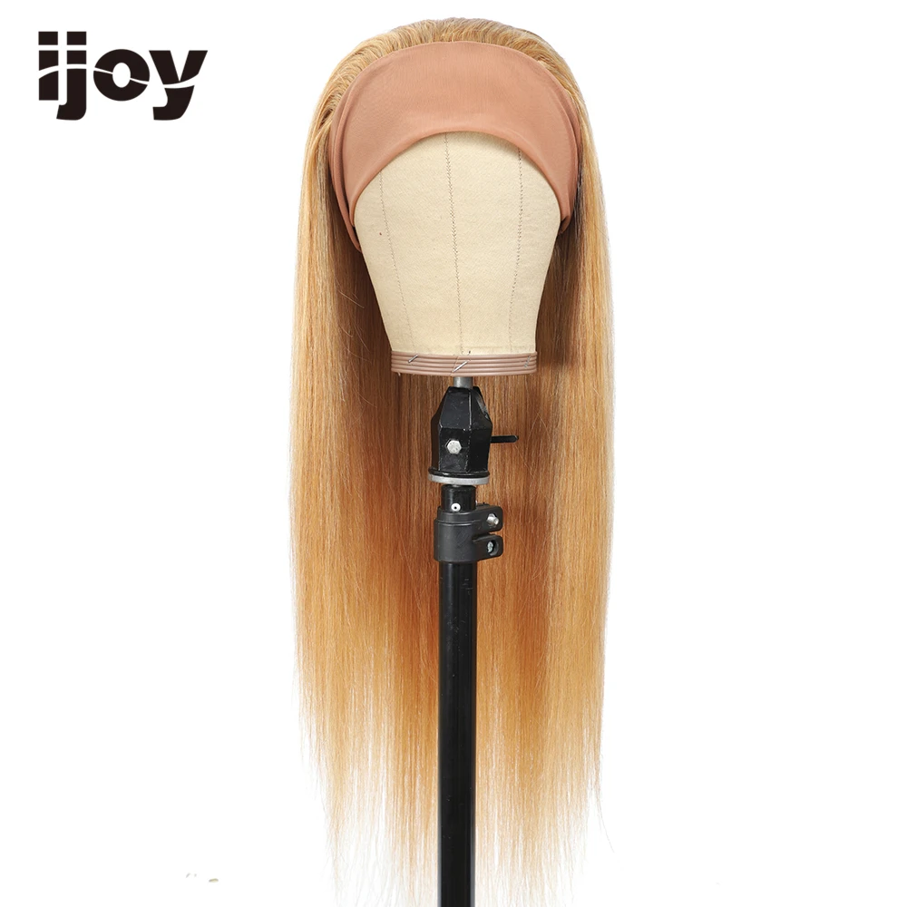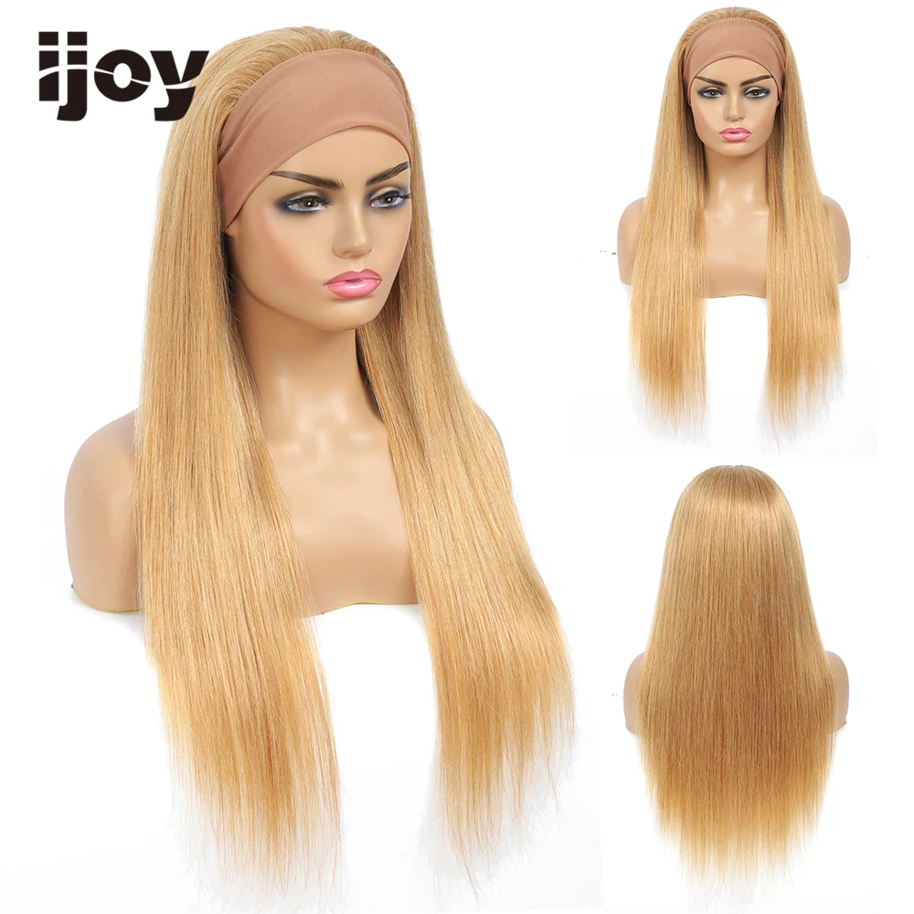Парик из натуральных волос парик с головной повязкой, прямые волосы, цветной медовый блонд, Длинные бразильские волосы для чернокожих женщин, не Реми IJOY