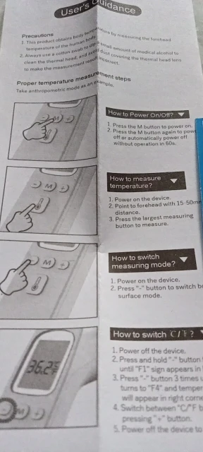 Термометр работает хорошо, измеряет две температуры, тело и окружающую среду! Но есть небольшой дефект, можно измерить до 1 градуса меньше!