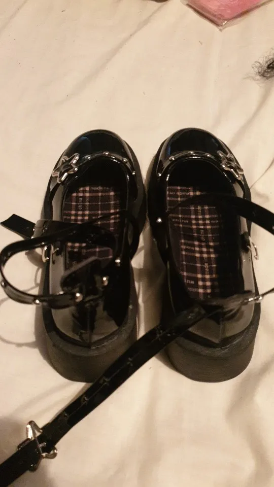 Не все пять звезд, потому что, к сожалению, они немного большие, как обувь, так и ремешки, хотя я читаю комментарии и отзывы, и они сказали, что заказывают истинные размеры. Я могу работать с ним, так что это не ужасно, и обувь очень милая и блестящая, я их люблю :)