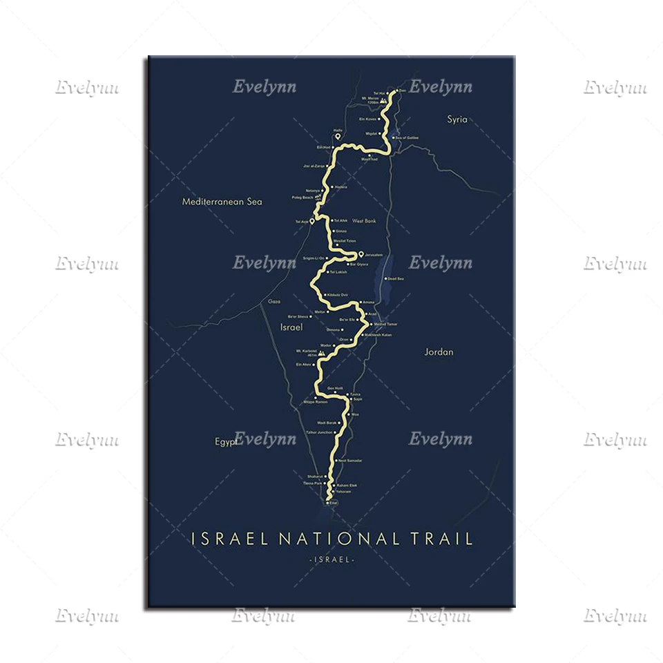 Израиль Trail карта Израильский национальный Trail плакат Shvil Yisrael плакат Trail карта искусство Современные принты для домашнего декора Холст картина в подарок