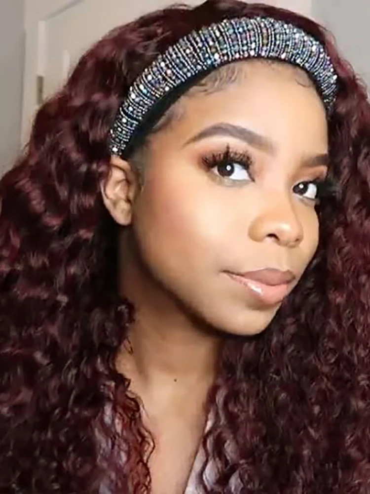 Парик из натуральных волос парик с головной повязкой, кудрявые воло...