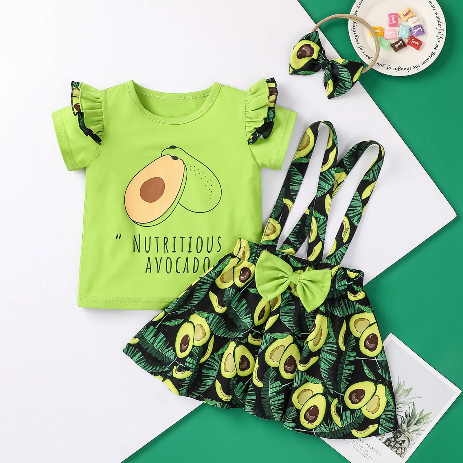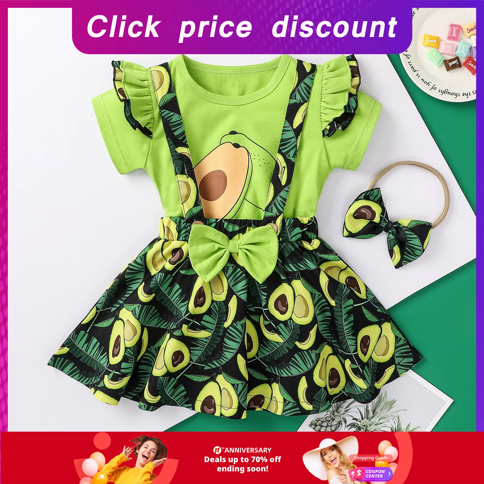 4 # летнее платье с авокадо детские топы с принтом букв + платье на бретелях с цветочным принтом для девочек, детские платья с короткими рукавами