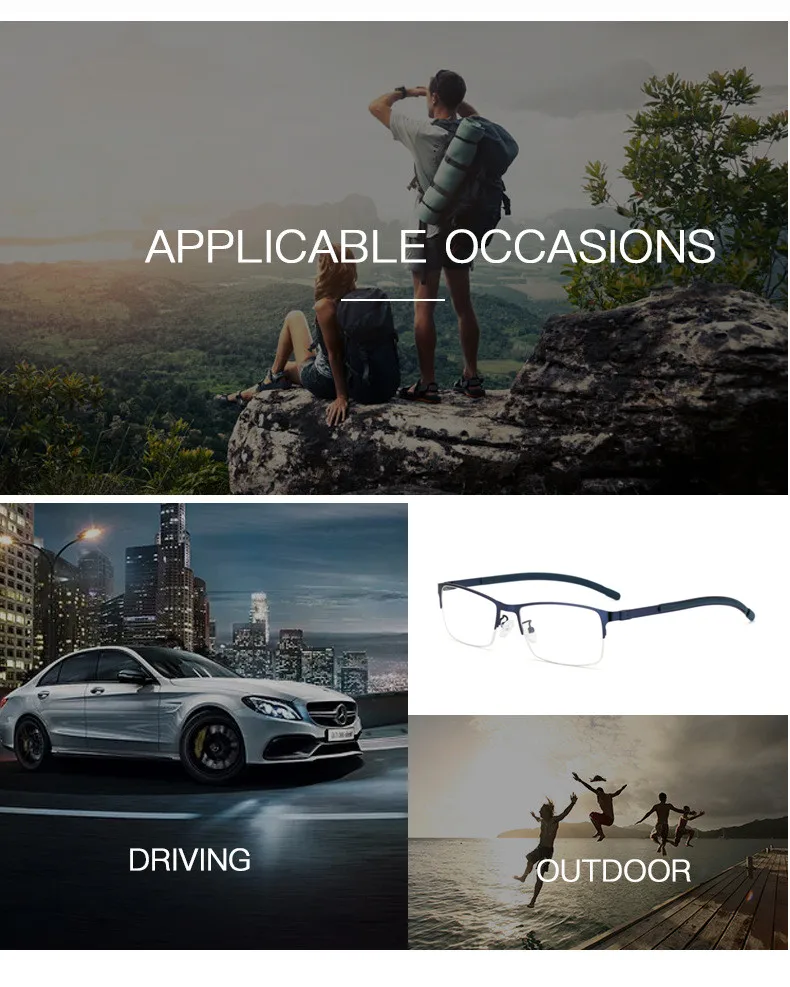О фотохромные линзы, они будут прозрачными и бесцветными в помещении или в темных местах, но они изменят цвет на открытом воздухе или на солнце, чтобы защитить ваши глаза от сильного светильник.