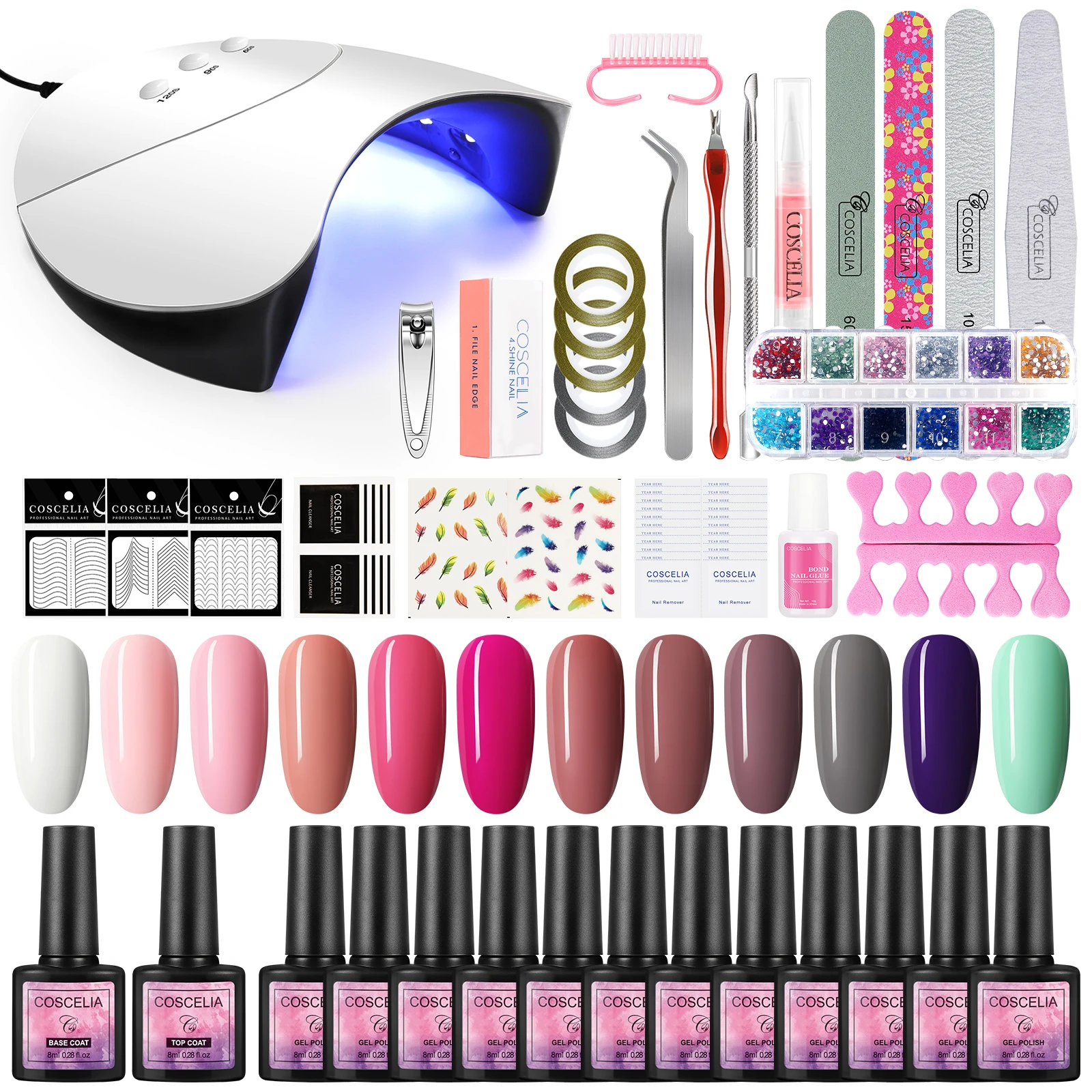 Набор гель-лаков для ногтей COSCELIA с УФ-светодиодной лампой, электрическая дрель для ногтей, удаляемая замачиванием Набор Для лаков, инструменты для ногтей, Набор декоративных украшений