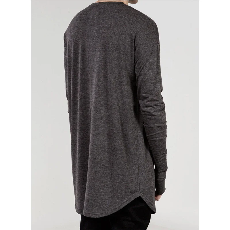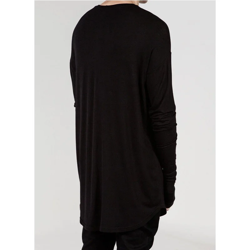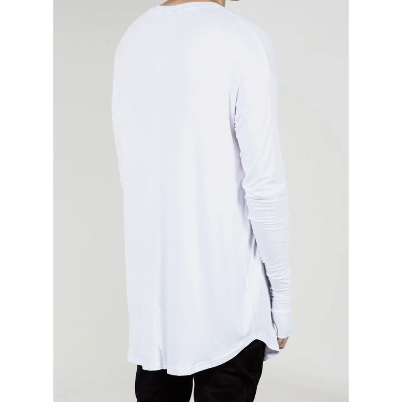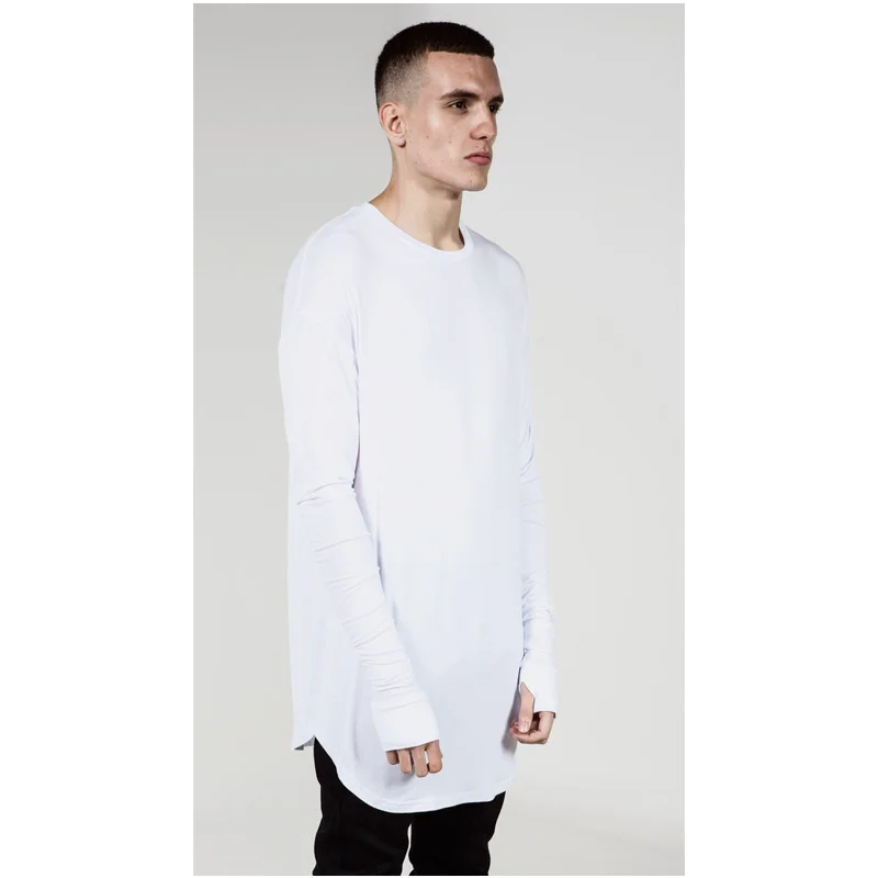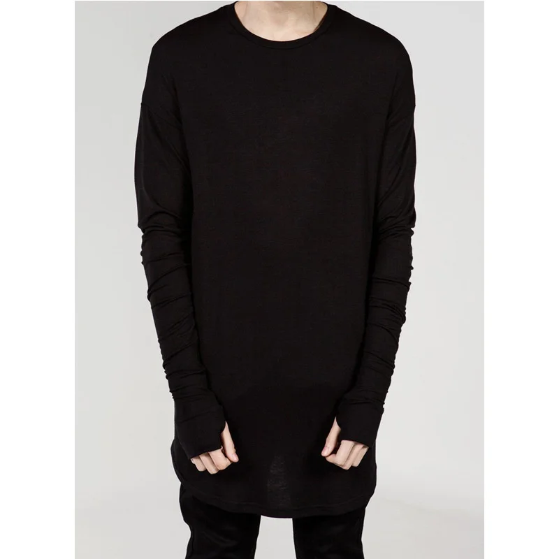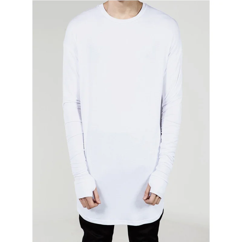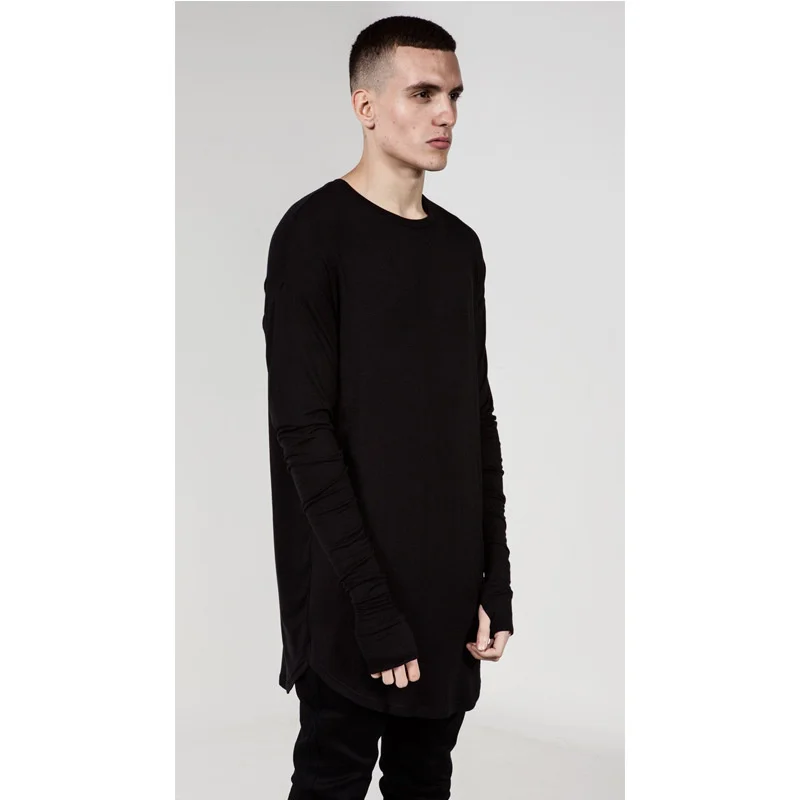 Футболка мужская удлиненная с отверстиями для большого пальца и манжетами, базовая хипстерская футболка с длинным рукавом, одежда в стиле хип-хоп, однотонная уличная одежда