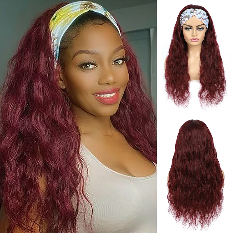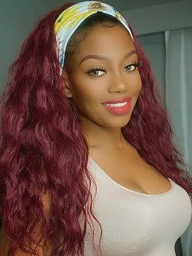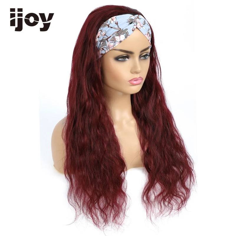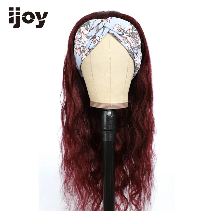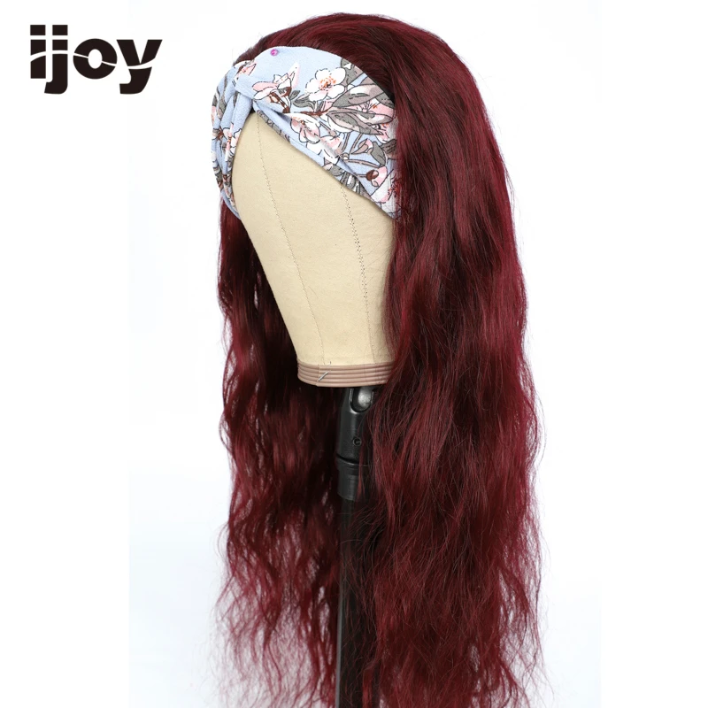 Парик из натуральных волос, цвет 99J, Бордово-красный, Длинные бразильские волосы для чернокожих женщин, не Реми IJOY, парик с головной повязкой