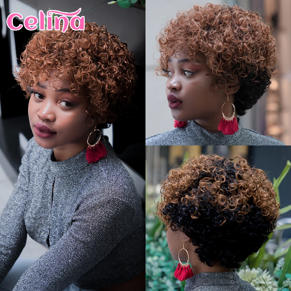 Парик из коротких кудрявых натуральных волос с челкой для чернокожих женщин, 100% парик из бразильских кудрявых натуральных волос Реми, полностью машинное изготовление, полный парик