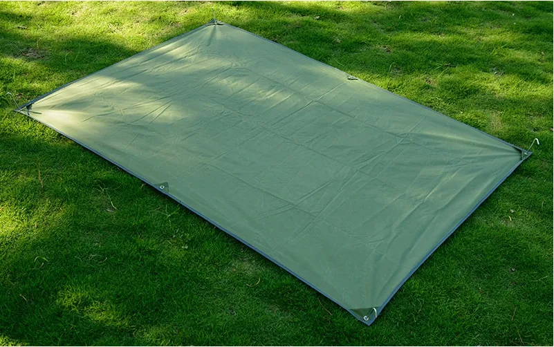 Размер: 210*150 см Ткань: 15D Силиконовый водонепроницаемый 5000 мм 15D зеленый около 300 граммов. Продукция используется для наземная ткань или солнцезащитный укрытие Примечание: Этот продукт не включает наземные гвозди, ветровую веревку, альпеншток