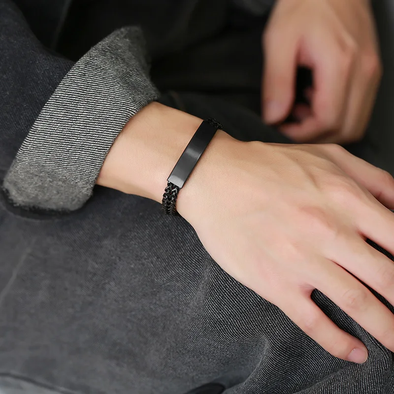 Мужские индивидуальные браслеты Vnox, черный браслет из нержавеющей стали Foxtail, повседневный идеальный персонализированный подарок Муж папа