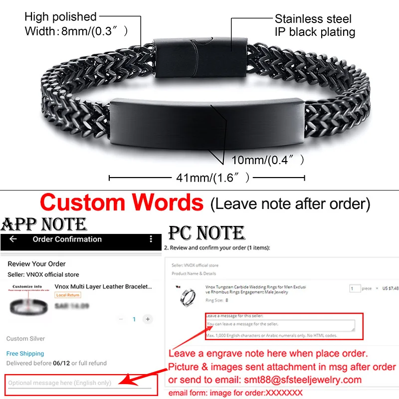 8. Как отметить текст и изображение?Укажите номер изображения внутри ().Например: черный шрифт 50, гравировка: Lucy (165) навсегда.Ваш собственный образ, пожалуйста, отправьте вложение в сообщении или отправьте на электронную почту: smt88 @ sfsteeljewelry