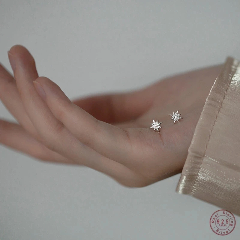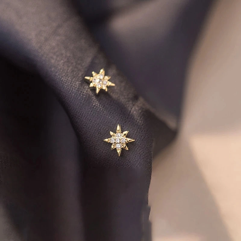 Модные серьги-гвоздики серебряного цвета со звездой и кристаллами для женщин, украшения для вечерние eh322