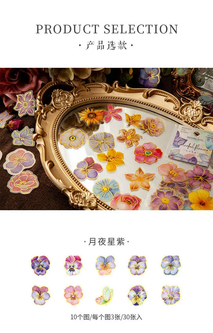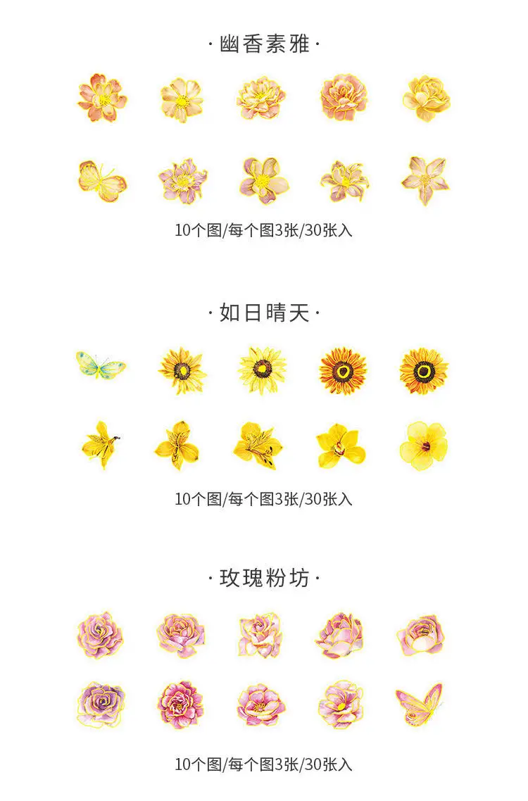 Набор наклеек с цветами вишни, розы, тюльпана, 30 шт., наклейки для стикер для канцелярских товаров, декоративные этикетки для скрапбукинга, дневника