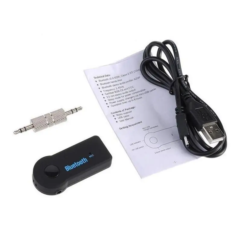Параметры:10 м, 0,5 Bluetooth-Совместимость с операционными передачиПоддержка Bluetooth-совместимая функция громкой связиЧастота: 2,4 ГГц3,5 мм стерео входное гнездоАккумулятор: 50 мАИсточник питания: зарядка с мини USB кабелемОсобенности: поддержка подключения наушников, мобильных телефонов, динамиков и автомобилейПосылка содержание: Bluetooth-совместимый приемник, 3,5 адаптер, USB кабель для зарядки, Инструкция на английском и китайском языках, английский посылка