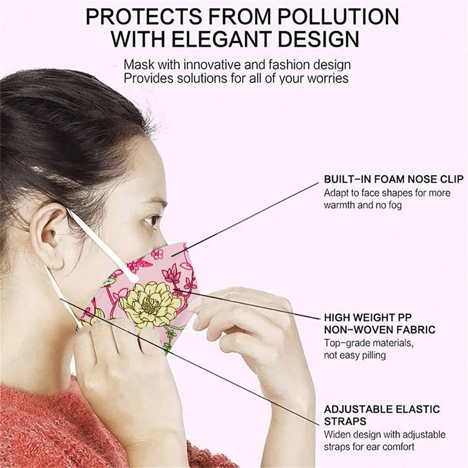 Маска ffp2mask для лица с цветочным принтом для взрослых, 5 слоев, FFP2MASK, 102050100 шт.
