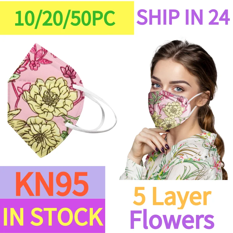 10 шт. mascarillas FFP2 KN95 защитная маска, с цветочной вышивкой, ...