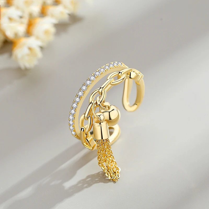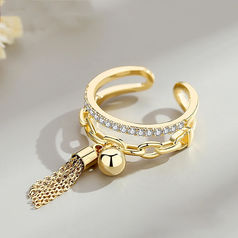 Женское кольцо с подвеской, регулируемое, с цирконием и кисточкой, ...