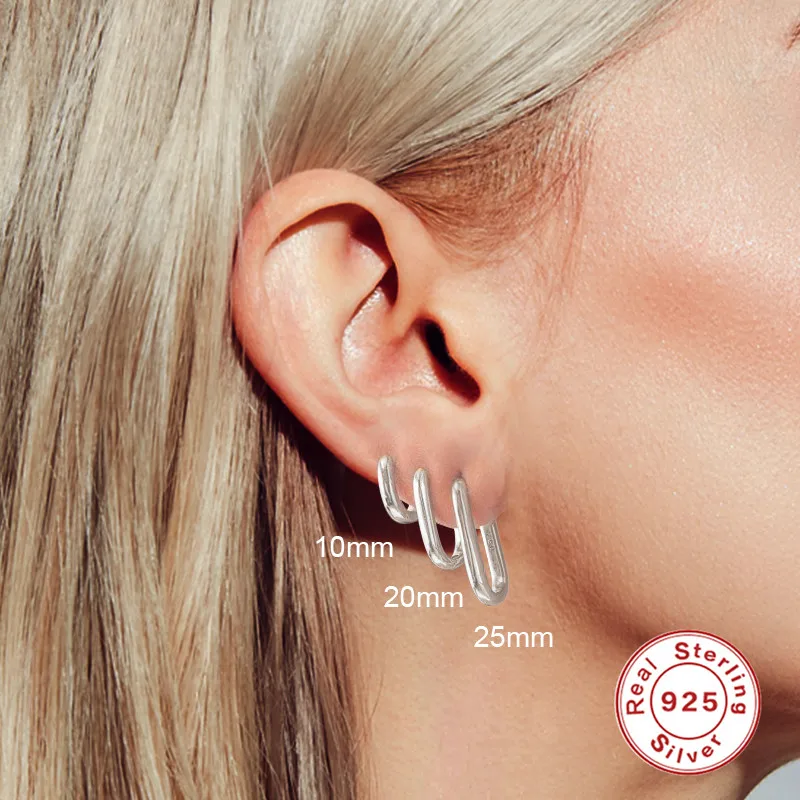 100% s925 стерлингового серебра серьги в виде колец, Модные Винтажные U Форма Круглый Круг Серьги Huggie для девушек и женщин bijoux femme