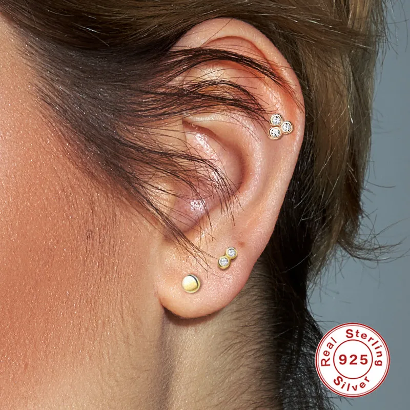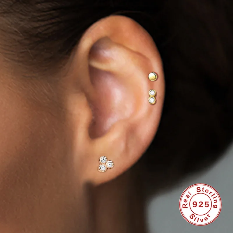 100% 925 стерлингового серебра циркона мини серьги-гвоздики для женщин Мини кубический цирконий драгоценный геометрический Набор шпилек для ушей ювелирные изделия
