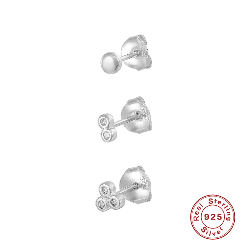 3 шт.компл. 925 пробы серебряные серьги-гвоздики 2 мм 3 мм 4 мм мин...